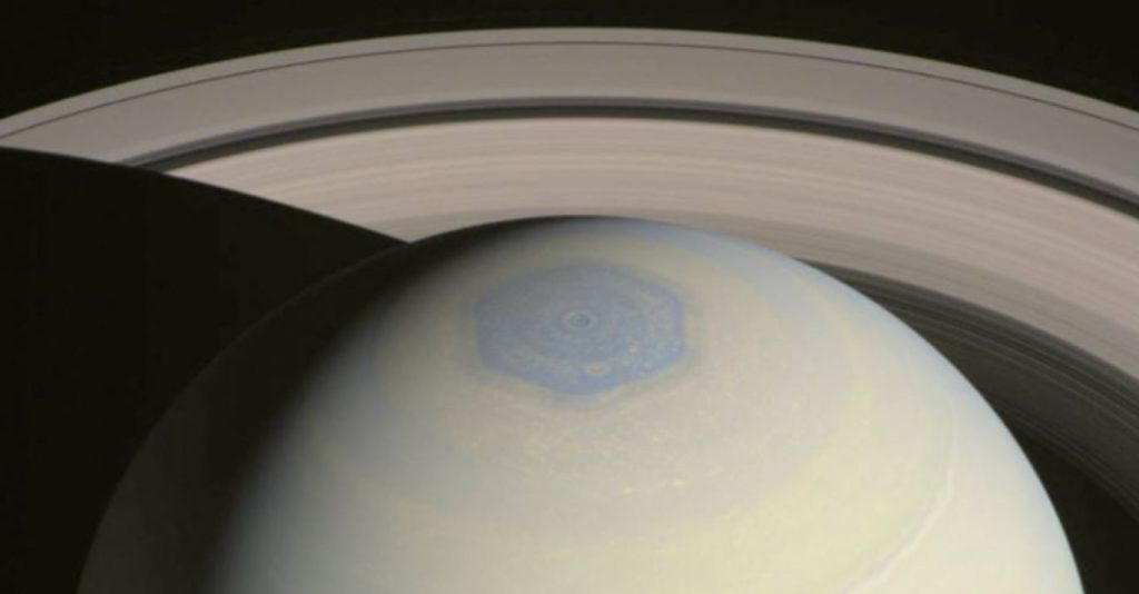 Il polo nord esagonale di Saturno visto dalla sonda Cassini.