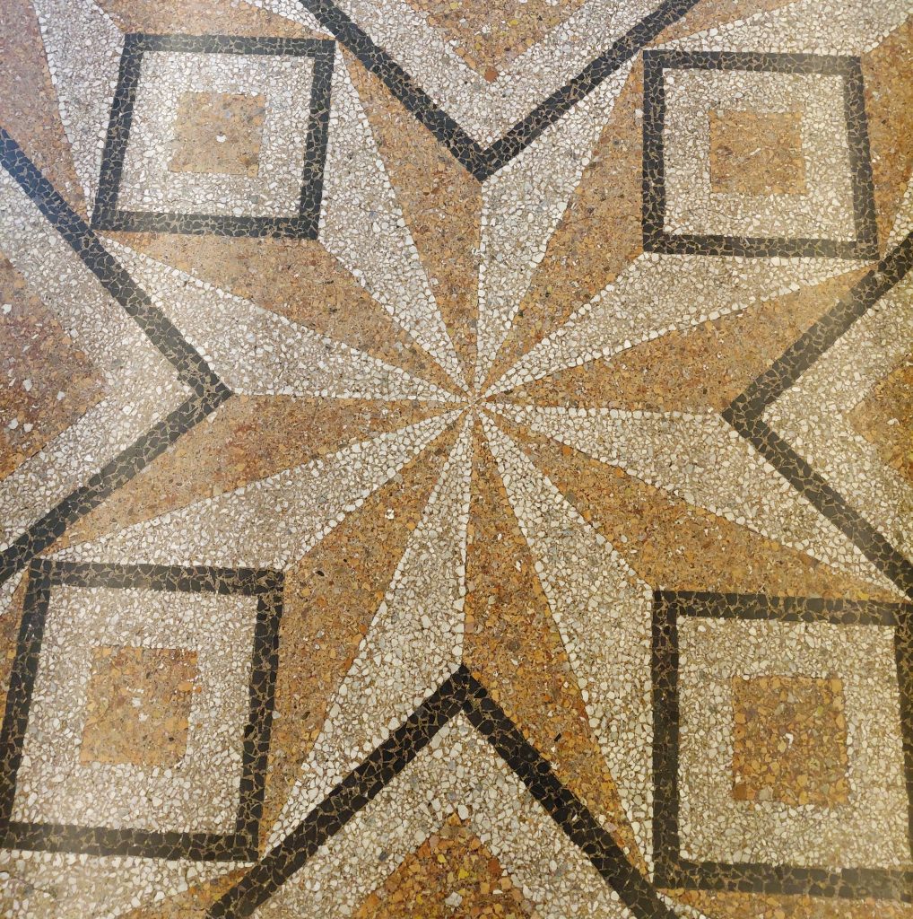 Per gli studenti: riconoscere gli elementi di simmetria nelle colonne (figura al centro) e nella pavimentazione (figura di destra).